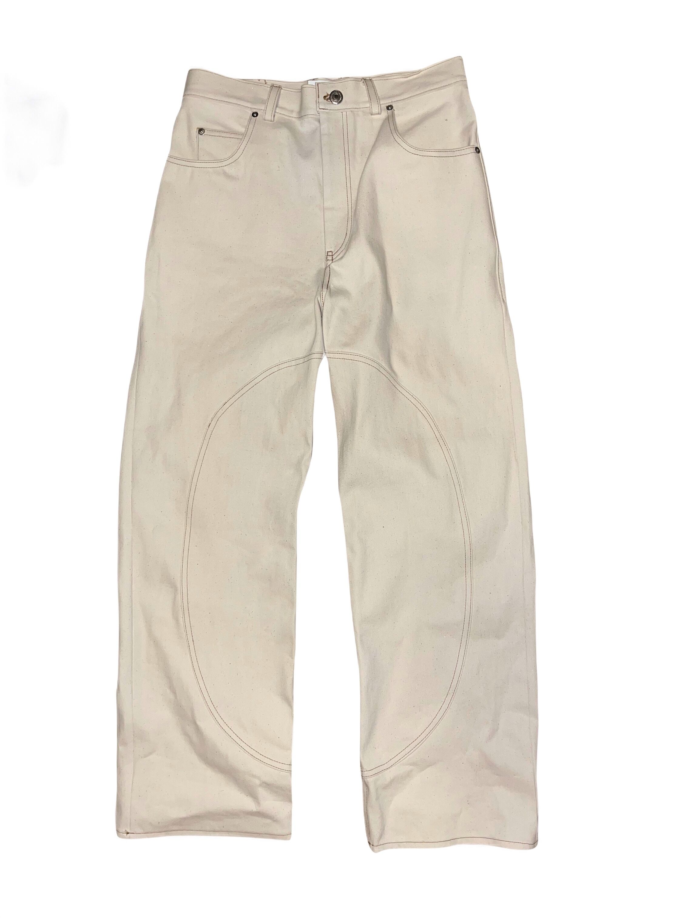These denim pants are made from elegant cream-white selvedge denim fabric.