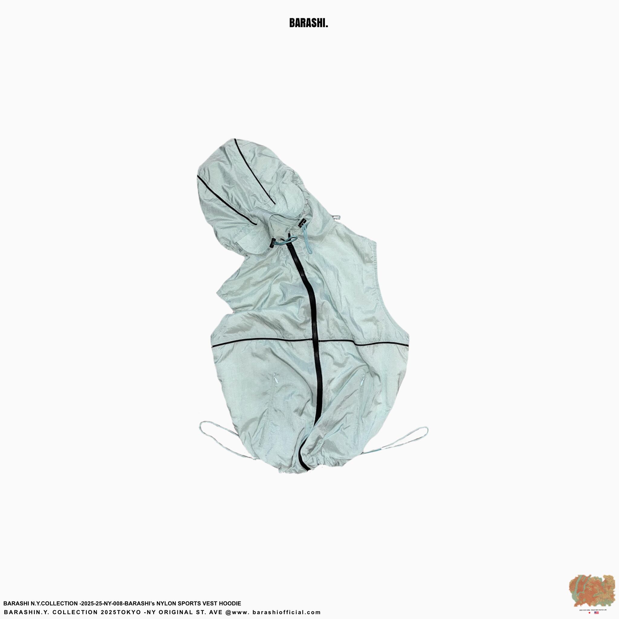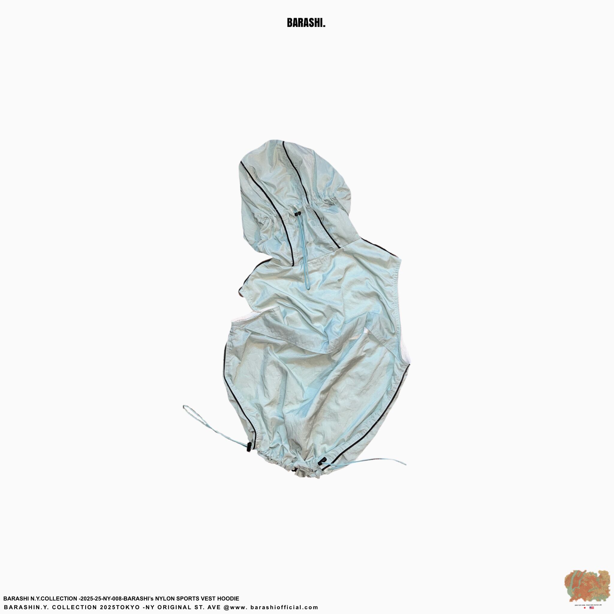 BARASHI N.Y.COLLECTION -2025-25-NY-008-BARASHI’s NYLON SPORTS VEST HOODIE /LIGHT BLUE